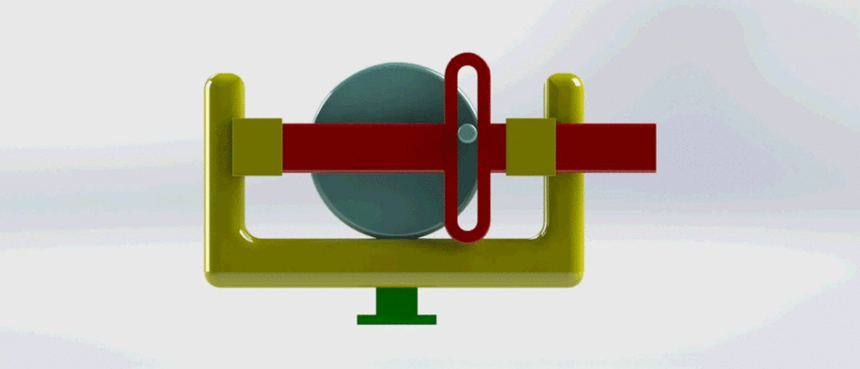 ② 스코치-요크 기구(Scotch-Yoke mechanism)는 아래 그림과 같이 회전운동을 왕복운동으로 혹은 그 반대로 변환시키는 기구이다. 좌우로 왕복운동하는 링크를 요크(yoke)라고 한다. 밸브 액추에이터(개폐장치) 등에 쓰인다.