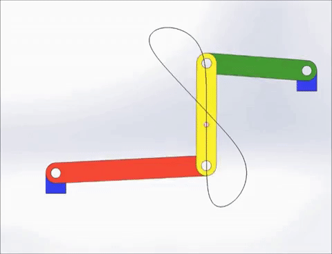 ① 와트 기구(Watt's mechanism)는 아래 그림과 같이 가운데 링크의 중심점이 직선에 가까운 왕복운동을 하도록 설계한 4절 링크 기구의 한 종류이다. 자동차의 서스펜션(충격 흡수 장치) 등에 쓰인다.