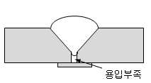 용입부족은 용접전류 증가, 열유입량 증가, 설계 변경, 용접속도 감소 등으로 해결할 수 있다.
