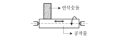 문 11. 공작물의 외경을 연삭하는 원통 연삭 방식 중 그림과 같이 연삭 숫돌을 일정한 위치에서 회전시키고 공작물을 좌우로 왕복 이동시켜 가공하는 방식은?