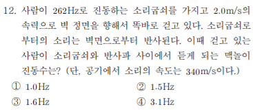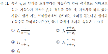 다음 문제는 제가 도플러효과 문제들 중 까다롭다고 생각했던 문제인데 함께 풀어봅시다.