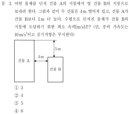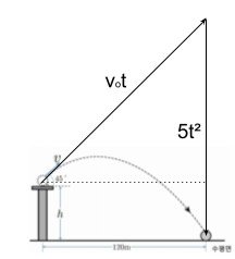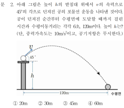 답은 4번입니다. (v_0t를 빗변으로 하는 직각이등변삼각형의 밑면과 높이는 120m로 같으므로 위와 같이 180과 120의 차이를 통해 h를 구할 수 있었습니다.)